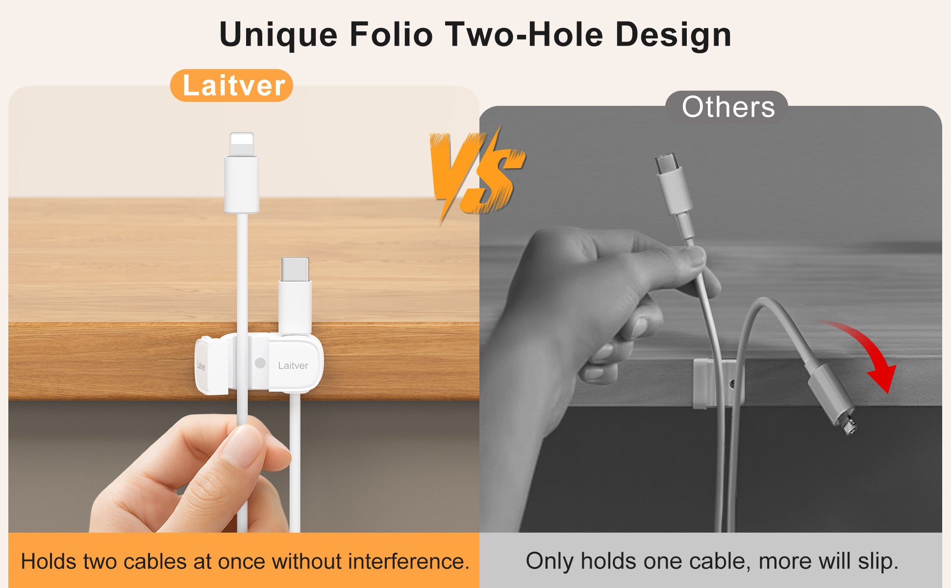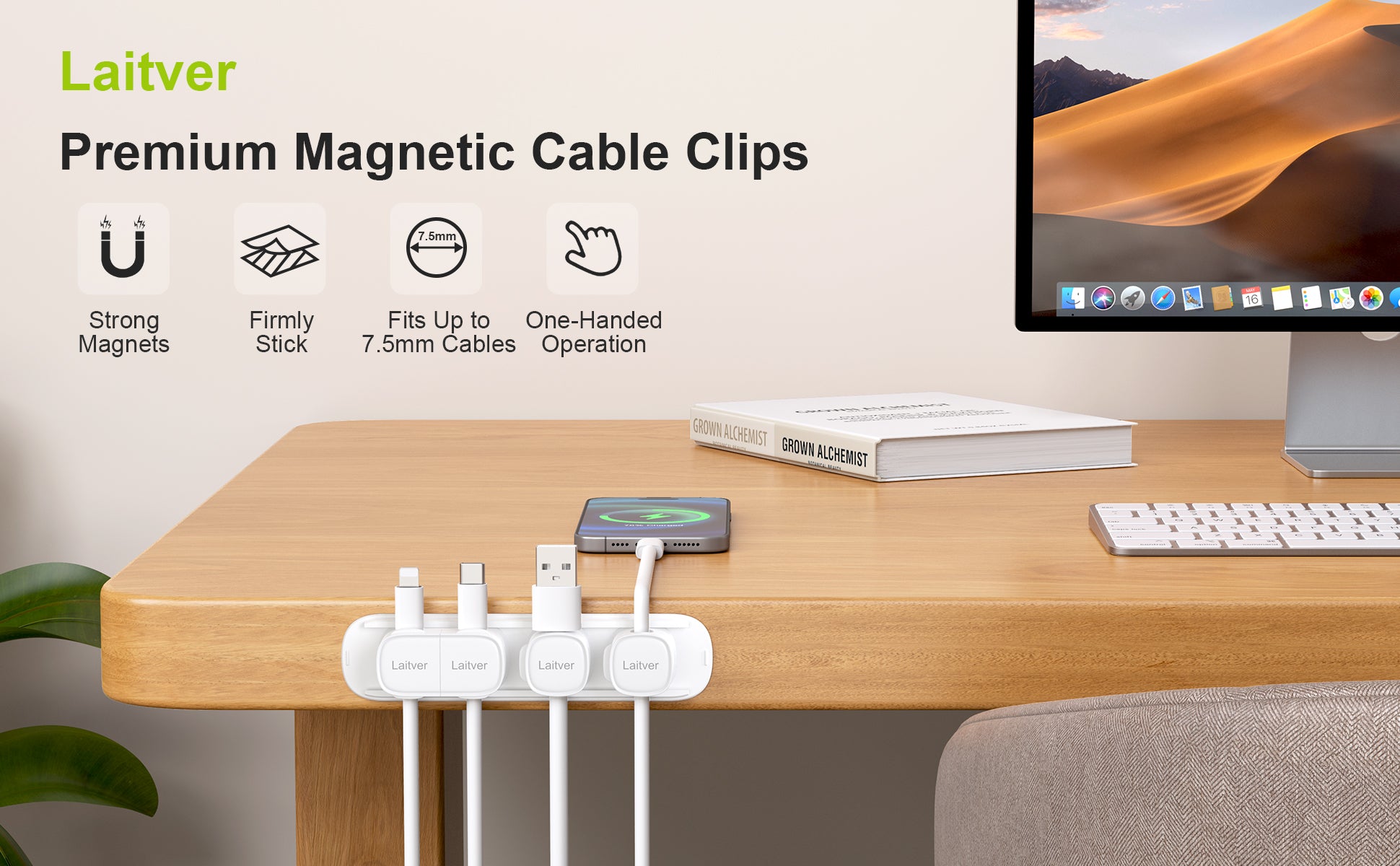 Strong Magnetic Suction & One-handed Operation: Each cable clip adopts a unique magnetic opening and closing design, the magnet is automatically and accurately aligned, saying goodbye to the cumbersome traditional cable clip. You can fix or release the charging cable, HDMI, USB and other types of cables with one-handed gently pressing, which is more energy-saving and efficient than the traditional grommets. Side clever design, easy to open, no longer afraid of hurting your nails!