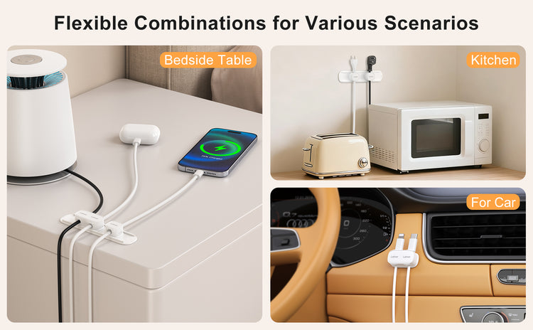 Compact & Multi-Scene Use: Compact and exquisite cable clips save space and can be cleverly integrated into various environments, whether it is the living room, kitchen, office, wall, bedside table or even the car, they are a good helper to keep tidy. Whether you are busy at work or in a leisurely time at home, these wire clips can be like a caring little assistant to keep every corner in order!