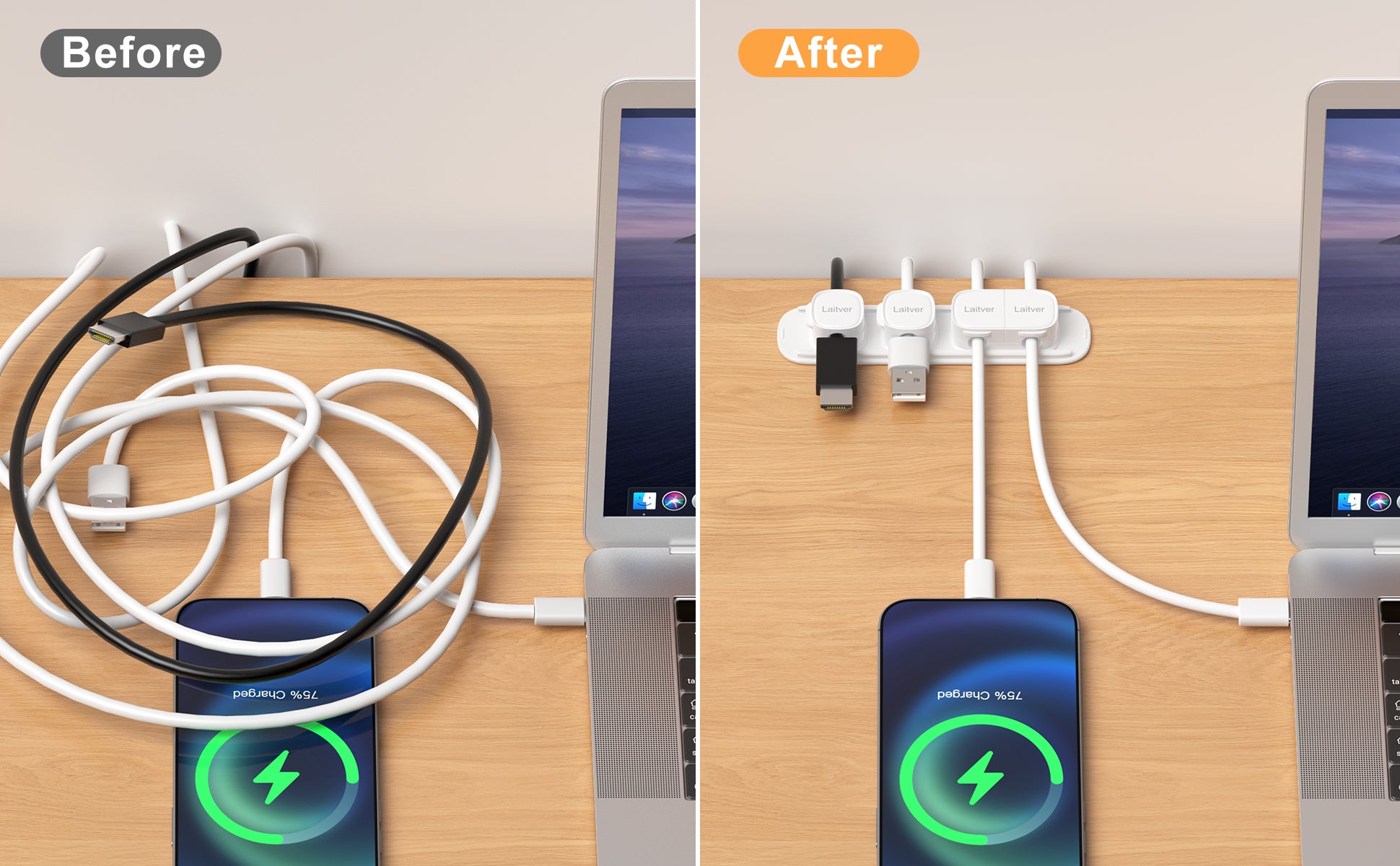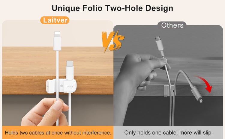Neat & Widely Adaptable: Cord organizer holder with 7.5mm diameter slot design, perfectly adapts to a wide range of cables up to 7.5mm diameter, including USB, HDMI, mobile phone charging cables, wired headphones, ethernet cables and power cables of various electronic devices. It effectively prevents cables from getting tangled and knotted, and at the same time, it is easy to plug and unplug, reducing the risk of damage caused by pulling.