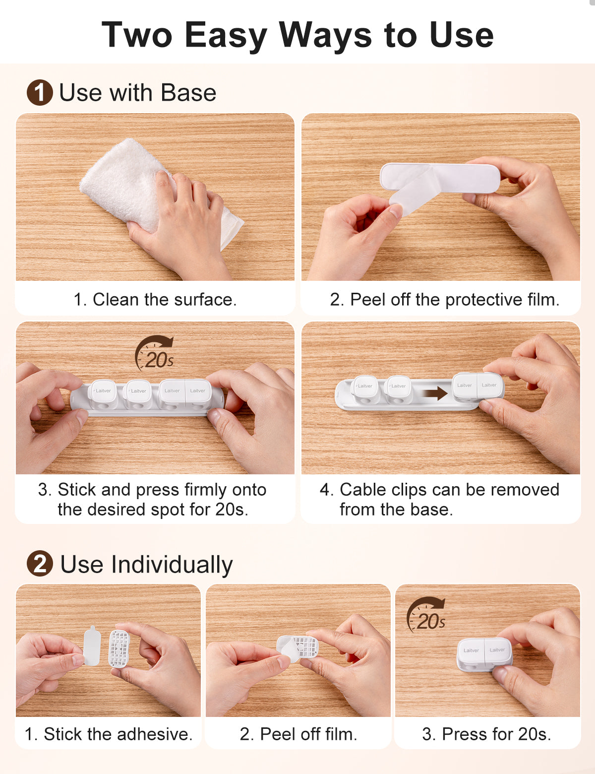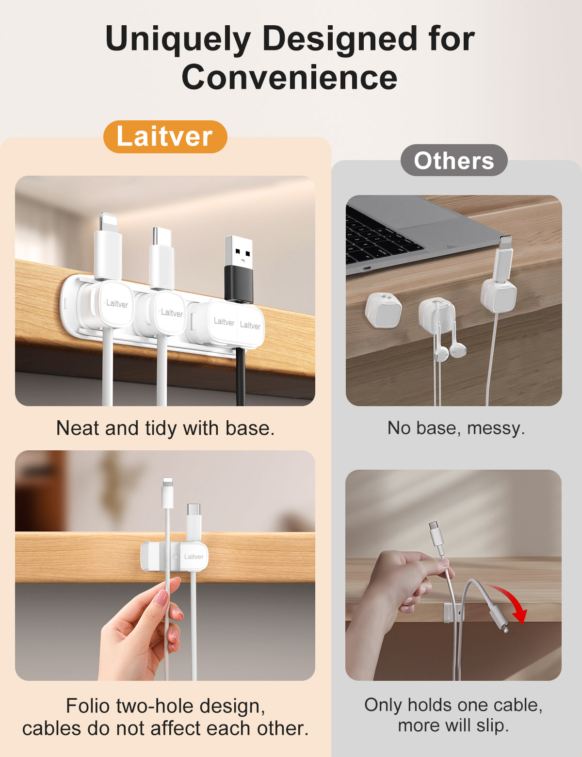 ![Laitver Cable Clips Holders - 6 Pack [Magnetic Buckle 1s Open/Lock] Cable Tidy Cord Cable Management,No-residue Strong Adhesive Desk Wire Organizer Charging Cable Keeper for USB,Car, Home, Office](http://ilaitver.com/cdn/shop/files/3_bfc2ecee-df07-4b2e-b53c-470799944d32_medium.jpg?v=1762239760)